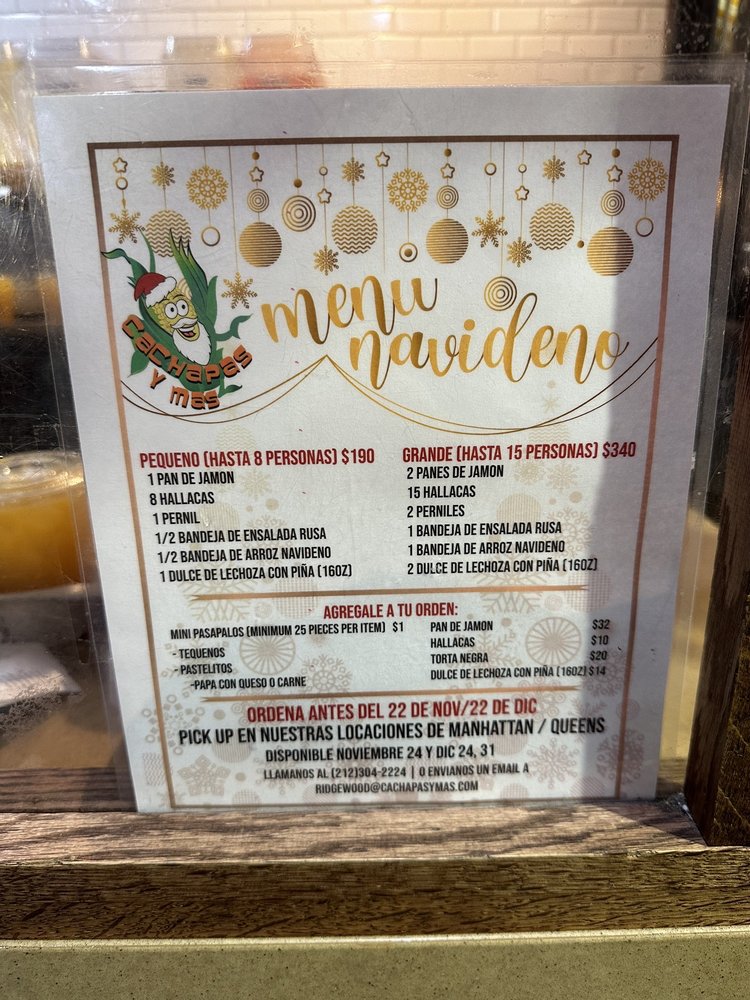 Located in the lively area of Dyckman St in New York, Cachapas y Mas offers a vibrant Venezuelan culinary experience. This casual yet classy restaurant provides a diverse menu that includes empanadas, sandwiches, and baked goods. Customers rave about the Tequeno Cheese, Chicken Empanada, and the CACHITO HAM AND BACON. The variety of salsas to go, including the Pink Sauce and Picante, adds an extra touch to the dishes. The ambiance is colorful and inviting, making it a perfect spot for a meal with friends or a quick bite. The staff is friendly, and the service is fast, ensuring a pleasant dining experience. If you're in the mood for authentic Venezuelan cuisine in a fun setting, Cachapas y Mas is definitely worth a visit.